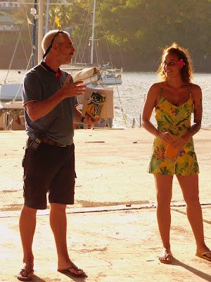 Een aantal boten heeft een bedankje georganiseerd voor Marc, de Covid-19 coördinator die de belangen van de zeilers zo goed heeft behartigt en de officals. Tevens wordt van de gelegenheid gebruik gemaakt om alle zeilers te informeren van de vrijheidsvlag die we hier bedacht hebben om de lokale bewoners te informeren dat wij 'veilig' zijn. Met deze vlag in het want mogen we binnen twee mijl van het eiland rondvaren! Er was ook al overeenstemming met een paar andere eilandbesturen. Die vinden het ook een goed idee en willen graag meedoen om zeilverkeer tussen een beperkt aantal schone buureilanden door bekende, met vlag gemarkeerde boten toe te staan. Maar Tahiti gooit roet in het eten, die wil het nog niet. Waarschijnlijk zijn de zeilers hier de enige toeristen die ze dit jaar gaan zien hier, dus ze willen graag dat we wat rondvaren en hier en daar de toerist gaan uithangen.
